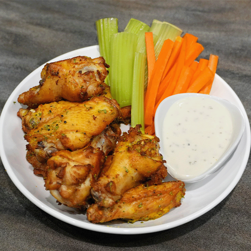 A truly signature offering. Nicely season marinated these party wings are lightly coated and fully cooked with steam, leaving the breading’s first fry to you. This results in enhanced flavor, juiciness and unmatched crispiness.