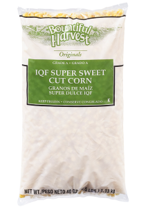 Individually quick frozen super Sweet whole kernel corn. No artificial colors, flavors or preservatives.