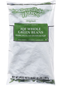 Individually quick frozen grade A whole green beans offer an appetizing deep green color, full flavor and provide exceptional plate coverage. Non GMO project varified!