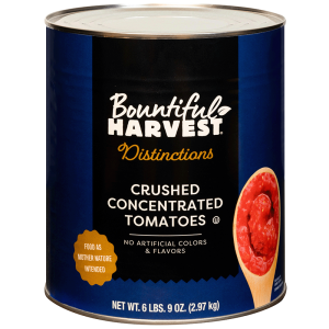 Bountiful Harvest Crushed Tomatoes help your professional kitchen create outstanding meals effortlessly. Each tomato has been picked at the peak of ripeness to ensure vibrant flavor and rich color that gives your recipes the best nature has to offer. Bountiful Harvest Crushed Tomatoes are also certified kosher and suitable for vegan and vegetarian dietary needs, making them versatile ingredients for a wide range of dietary needs. Save valuable prep time in the kitchen and create dishes that delight and impress your customers with each can of Bountiful Harvest Crushed Tomatoes.