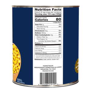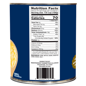 Sweet corn picked at peak ripeness and packed within hours to seal in farm-fresh goodness. Naturally sweet flavor with bright golden color and just-off-the-cob crispness from 100% sweet corn grown on family farms in America’s heartland. Simple ingredients – only corn, water, sugar, and salt with no preservatives. Perfect as a side dish or in recipes like corn chowder and salsas. Ready-to-eat convenience in environmentally friendly recyclable steel cans.