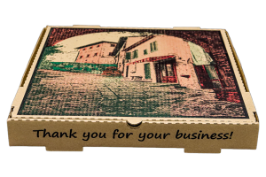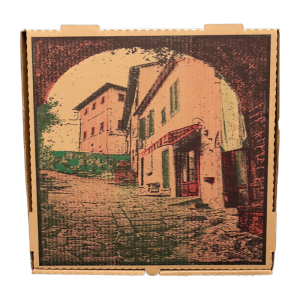 12” Kraft Pizza Box B Flute with Cityscape Design