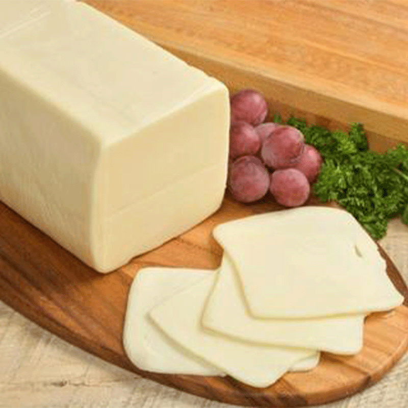 A soft cheese with a mild dairy flavor and white to light cream color.